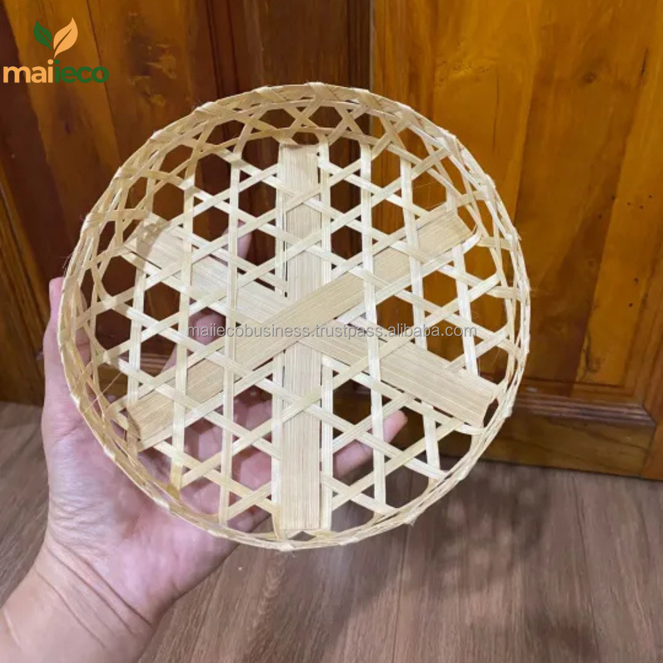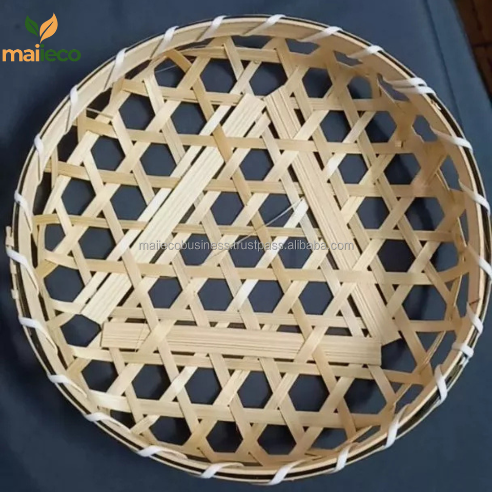 Handmade Natural Bamboo Round Tray Eco-Friendly Vintage Style Fruit and Food Serving Display Circle Shape
