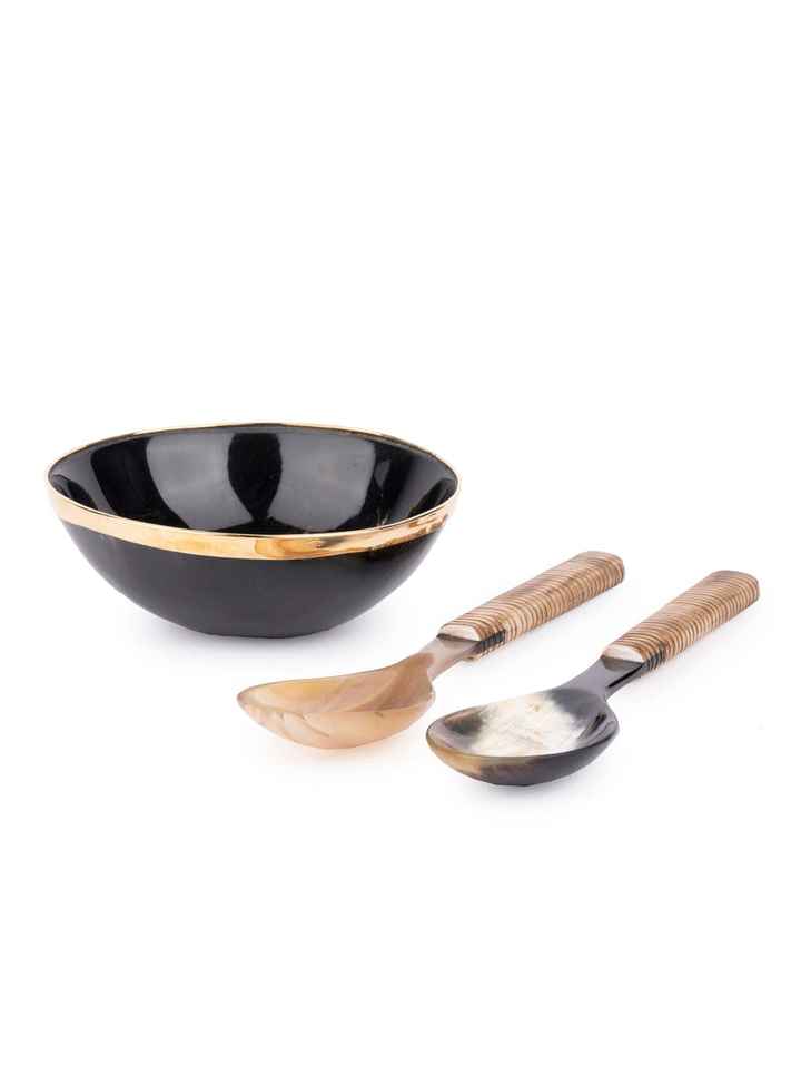Handmade Natural Buffalo Horn Salad Tools-Serving Bowl with Matching Spoon and Fork at Wholesale Price by HF Crafts