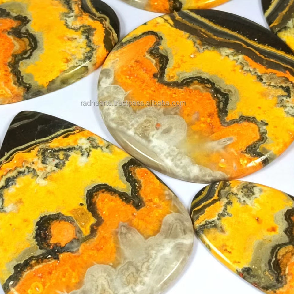 Handmade Natural Bumble Bee Jasper Cabochon Yellow Flat Back Smooth Crystal Gemstone Quartz Material Free Size Healing Lot