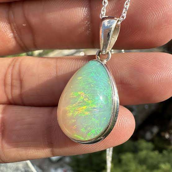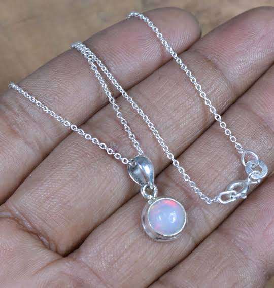 Handmade Natural Ethiopian Opal Sterling Silver 13X18MM Bezel Set Link Chain Vintage Wedding Gift Jewelry