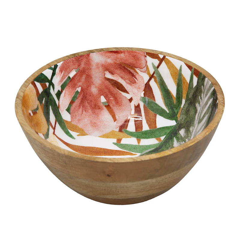 Handmade Natural Finished Wood Salad Bowl Eco Friendly Wooden Bowl Printed Inside Decal Enamel Wood Fruit Salad Bowls Available