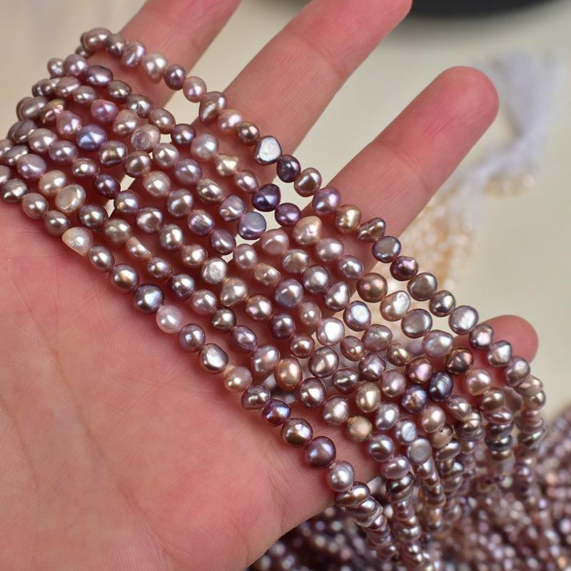 Handmade Natural Freshwater Pearl Necklace Baroque Shaped Two-Sided with Light Horizontal Hole 4-5mm White Loose Pearl Jewelry