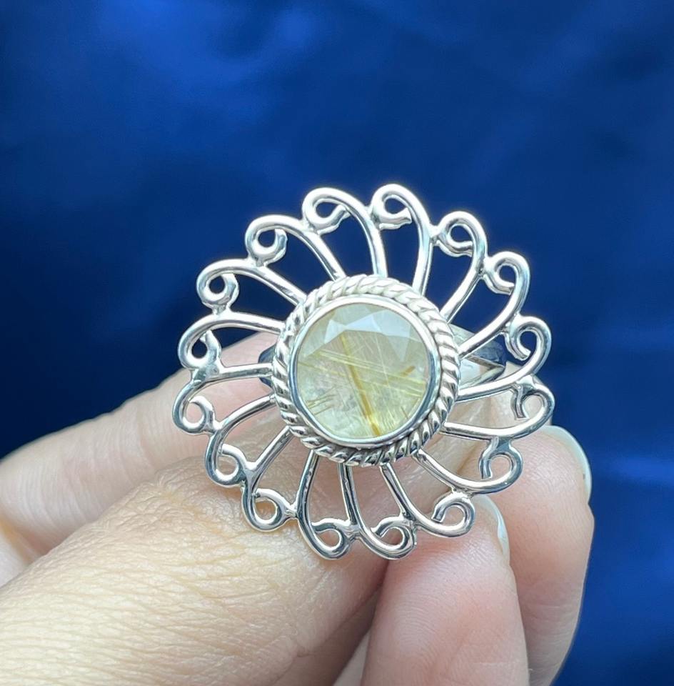Handmade Natural Golden Rutile Gemstone Silver Statement Ring for Women for Weddings
