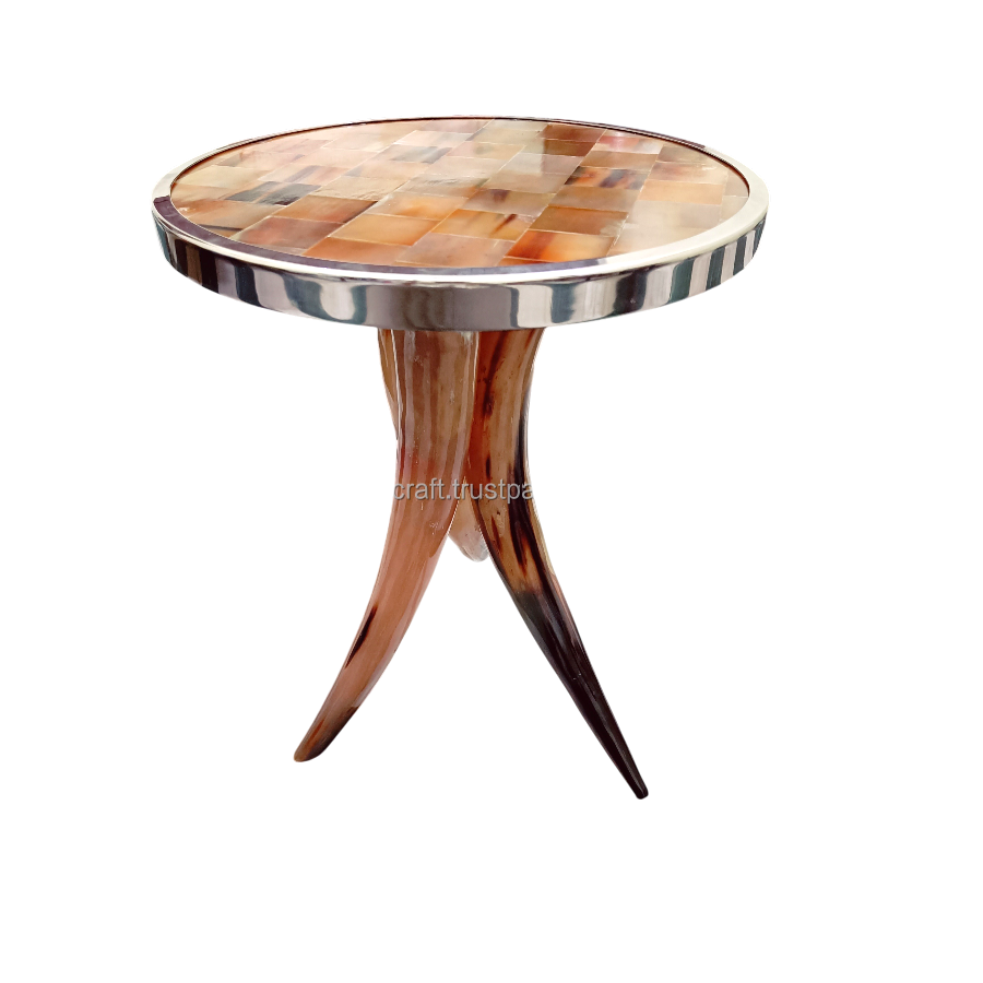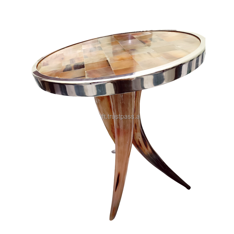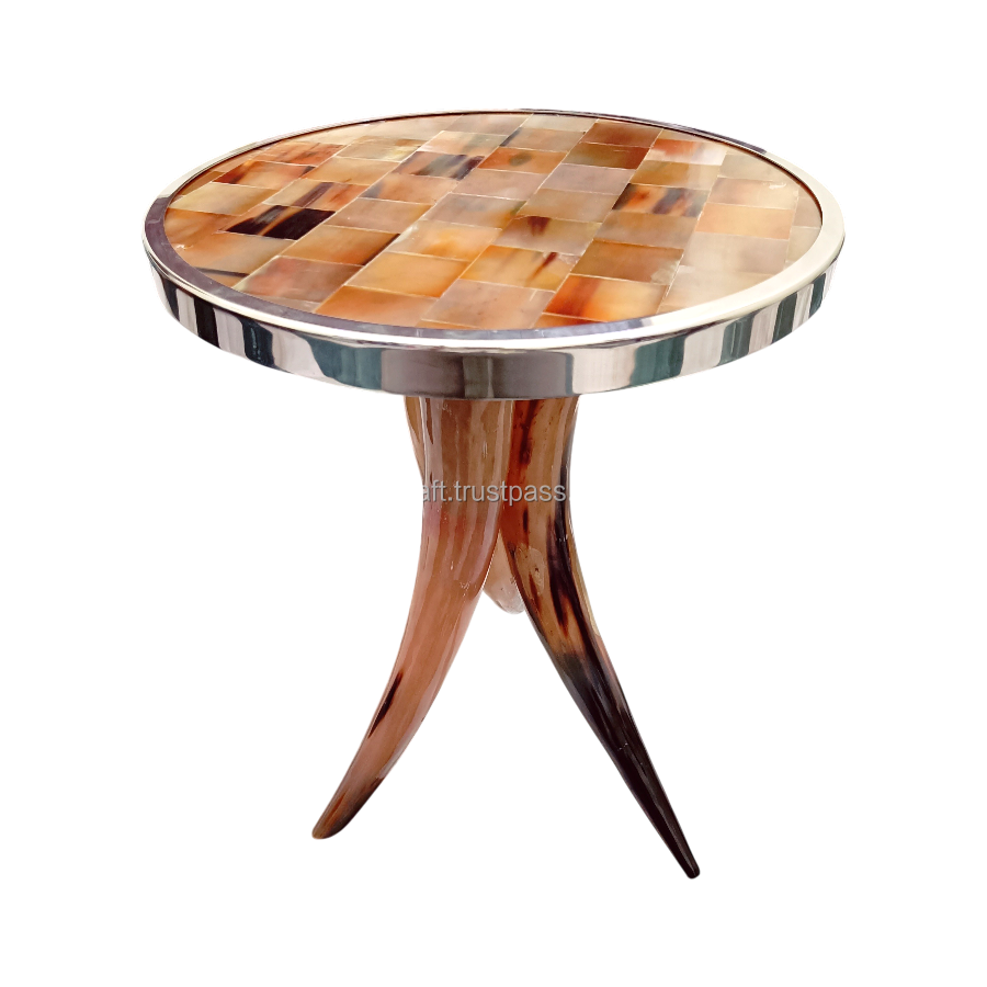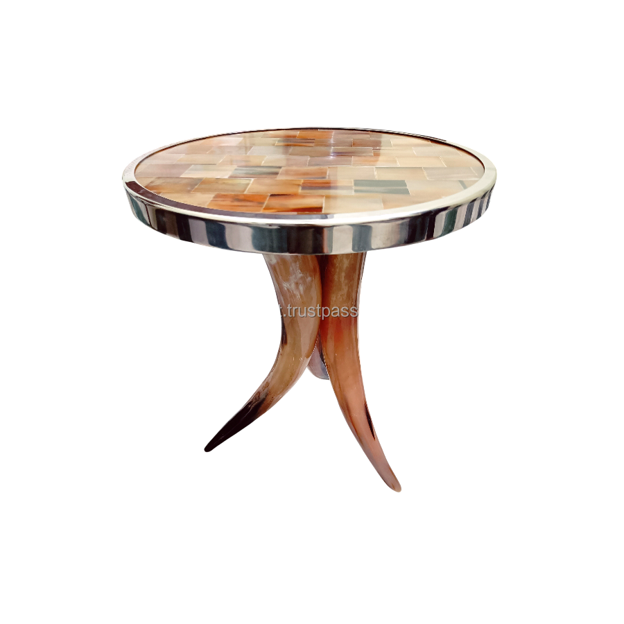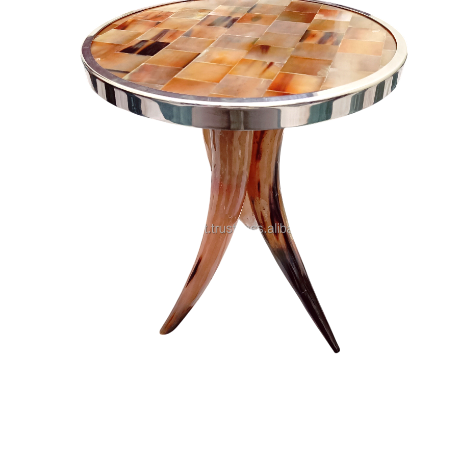 Handmade Natural Horn Inlay Round Coffee Table Luxury Rustic Wooden Real Touch Home Christmas Lighting Interior Design India