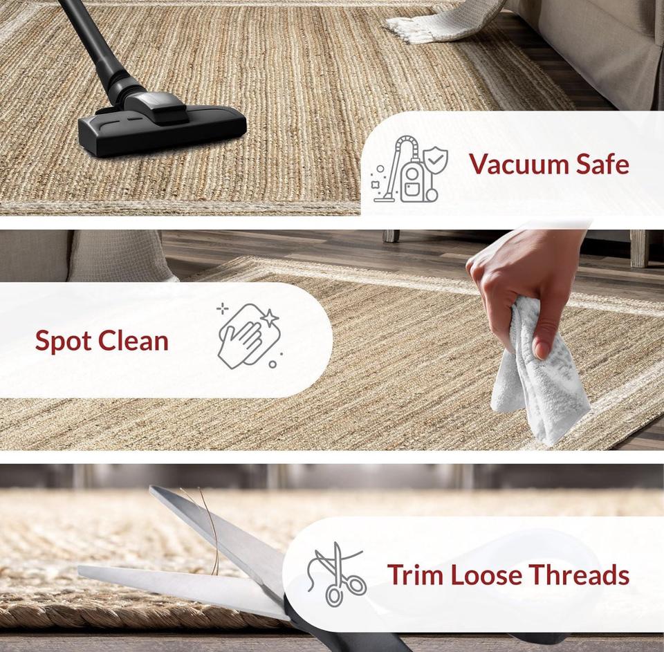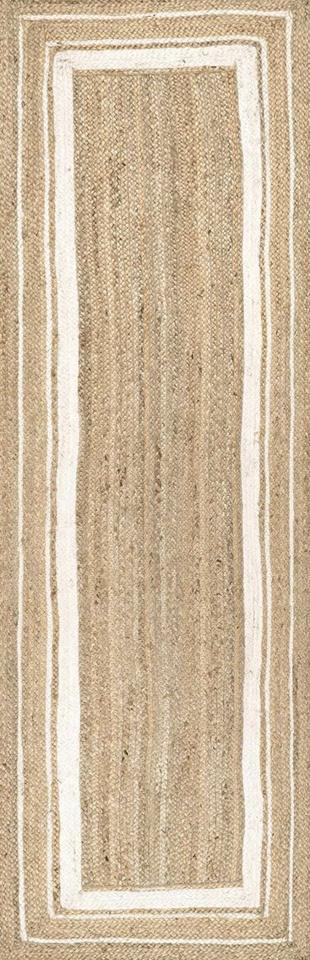 Handmade Natural Jute Runner Rug with White Border – Eco-Friendly Rustic Hallway Carpet