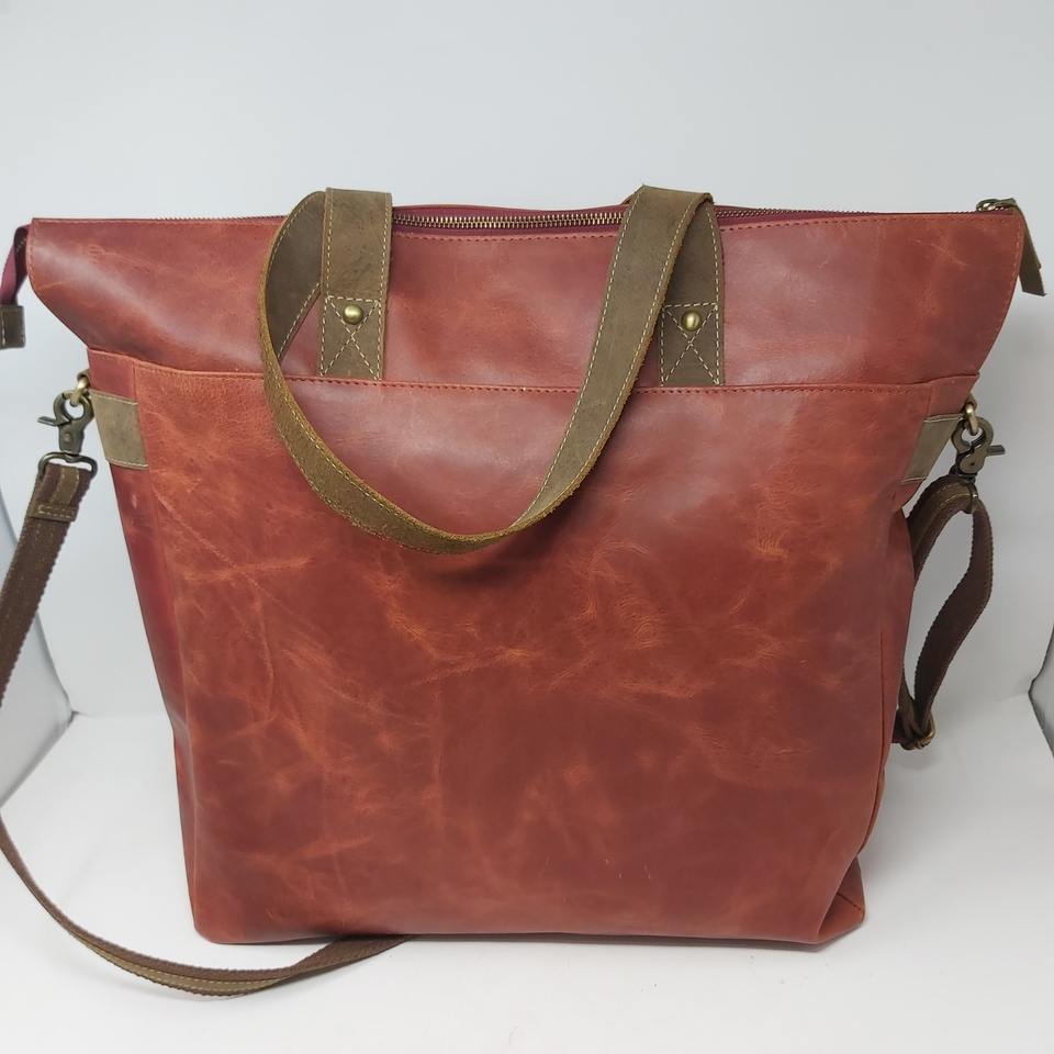 Handmade Natural Leather Bohemian Tote Bag Women Hand Tooled Fringes Casual Zipper Button Geometric Chains OEM Customization
