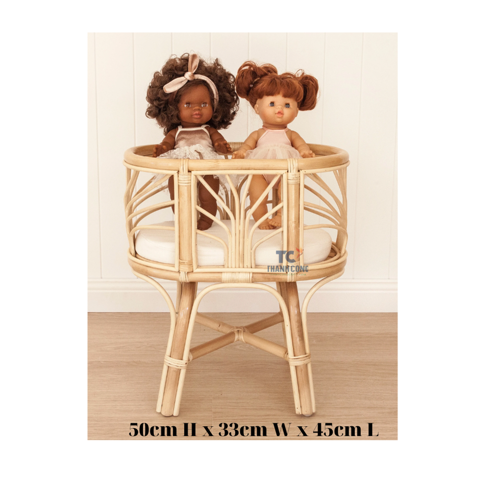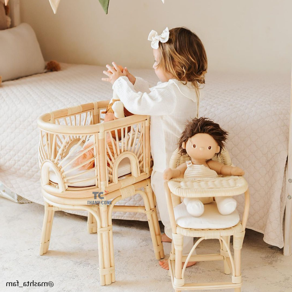 Handmade Natural Rattan Bassinet Set for Girls Includes Pretend Furniture Bed & Top for Imaginative Play & Storytelling