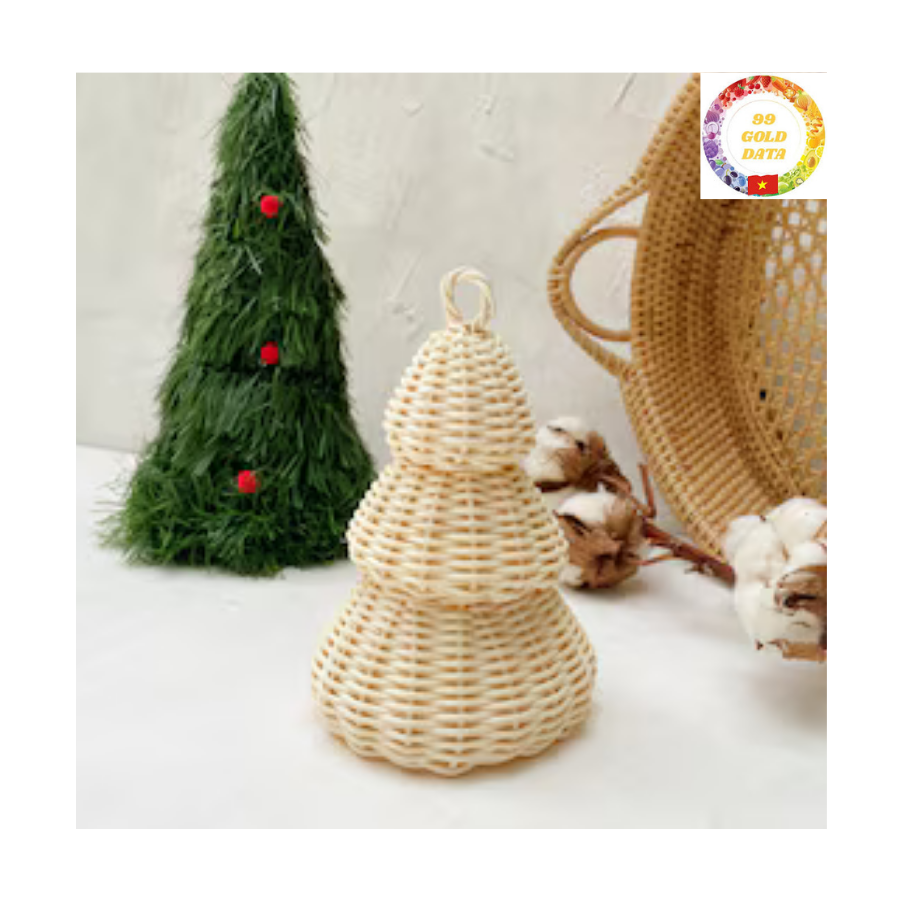 Handmade Natural Rattan Christmas Tree Hanging Ornaments Rustic Wicker Boho Holiday Decoration for Wall Home and Table Decor