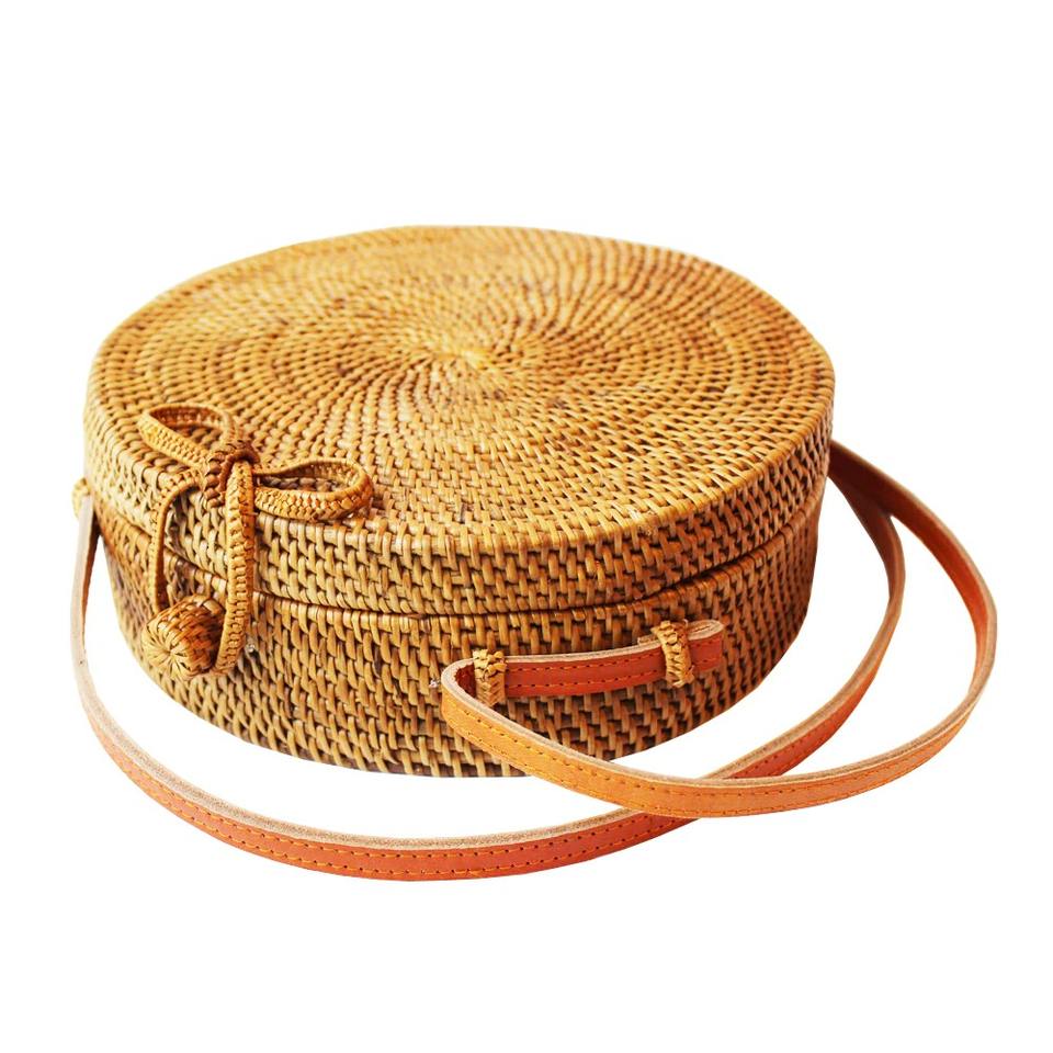 Handmade Natural Rattan Handbag for Women Vintage Style with Cotton Liner Price round Rattan Bag in Wholesale