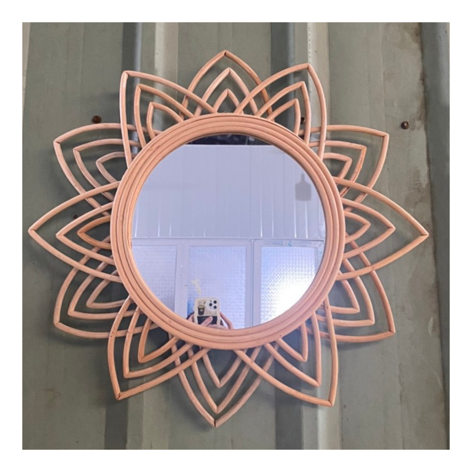 Handmade Natural Rattan Wall Mirror Boho Style Decorative Round Mirror for Living Room Bedroom Entryway Home Decor Wholesale