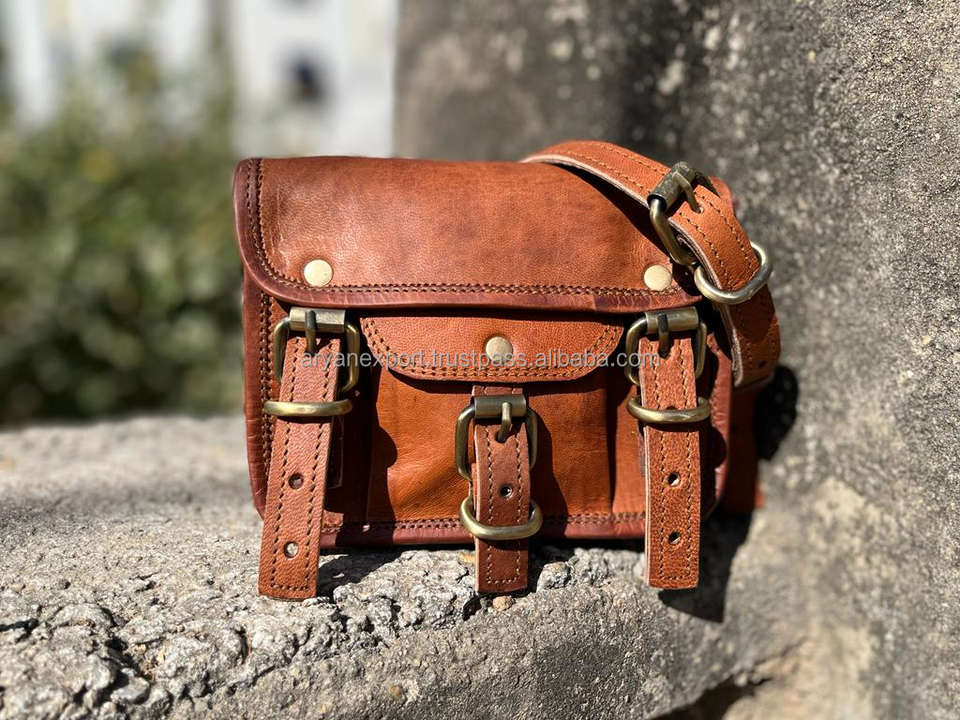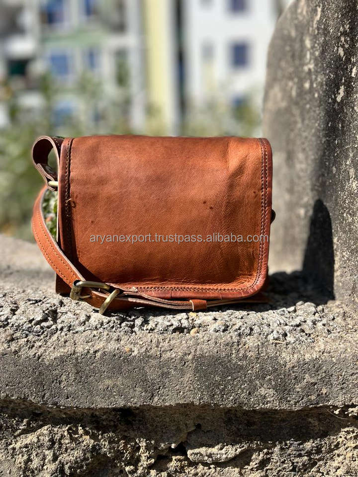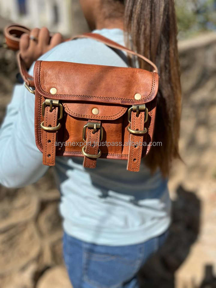 Handmade Natural Real Goat Leather Sling Bag Single Strap Vintage Style with Cotton Genuine Leather Canvas Lining Candy Pattern