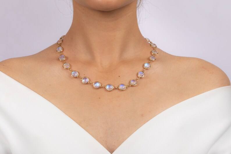 Handmade Natural Round Rainbow Moonstone Necklace 18K Pure Yellow Gold Gemstone Necklace Fine Jewelry Birthday Gifts