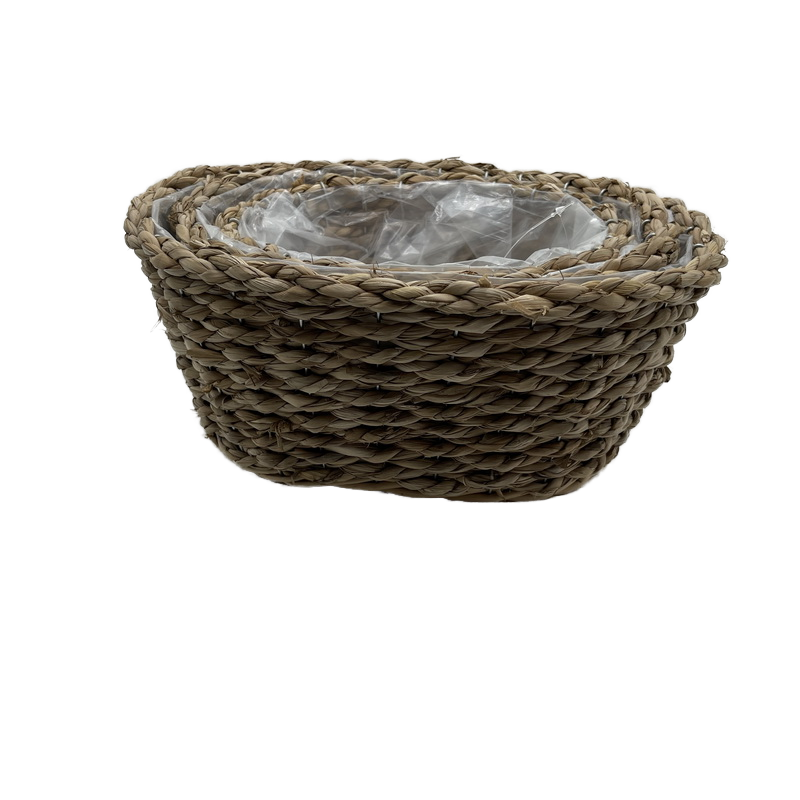 Handmade Natural Seagrass Cattail Rope Flower Pot Woven Straw Garden Basket for Home for Plant Gifts Wholesale
