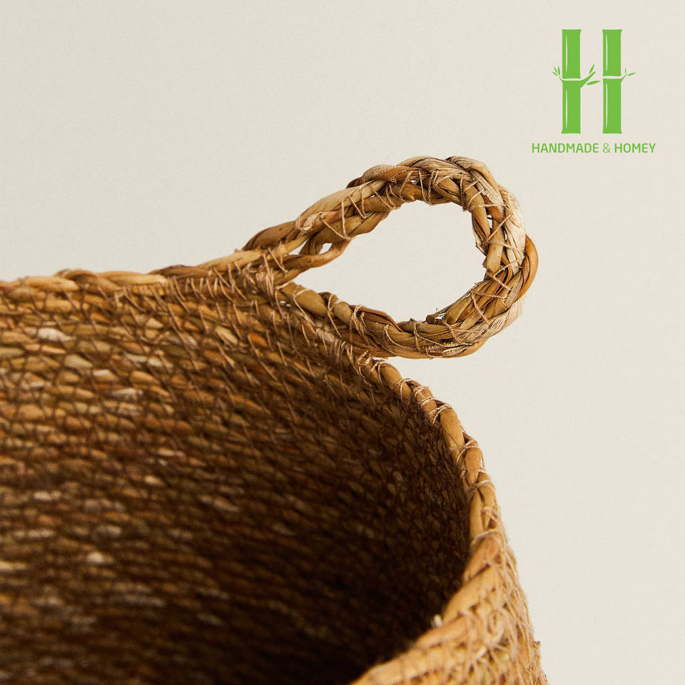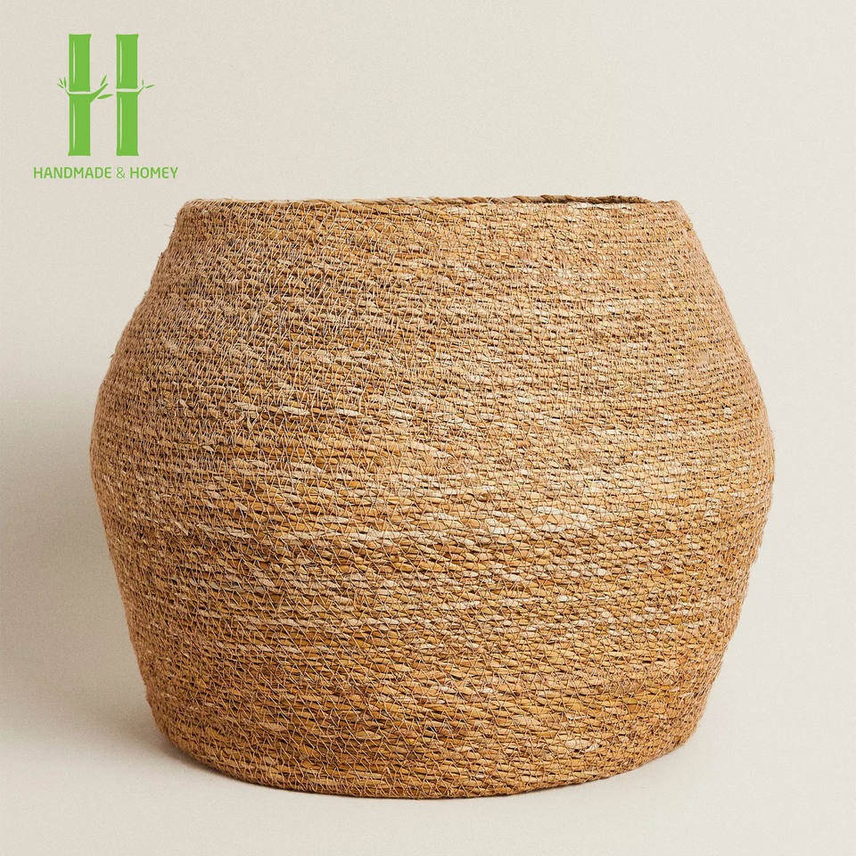 Handmade Natural Seagrass Storage Basket Home Decorative Christmas Decorations Gifts Laundry Basket With Wheels OEM From Vietnam