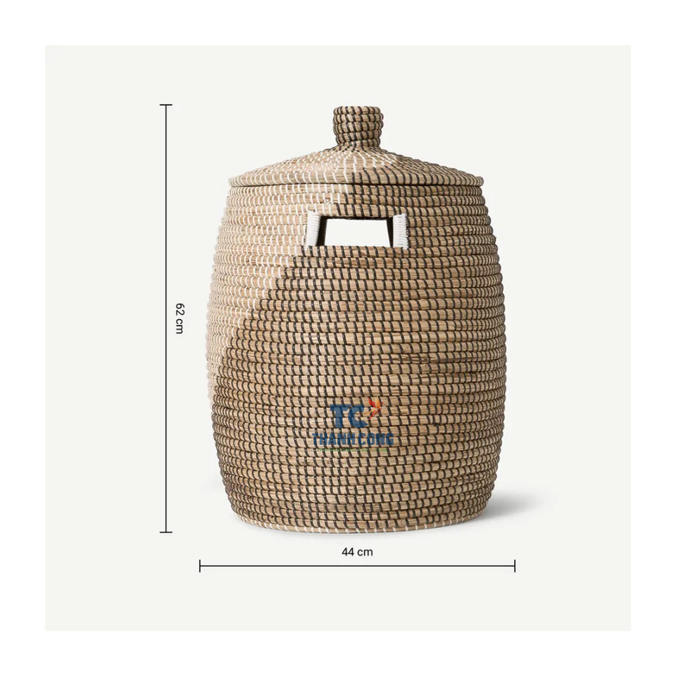 Handmade Natural Seagrass Storage Basket with Wicker Lid for Kitchen Home Bathroom Food Storage or Jewelry Organization