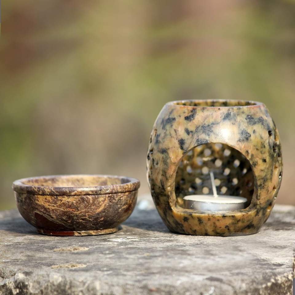 Handmade Natural Soapstone Tea Light Holder Aroma Diffuser Lamp Home Decorative Christmas Showpiece Hand Carved Heat Resistant