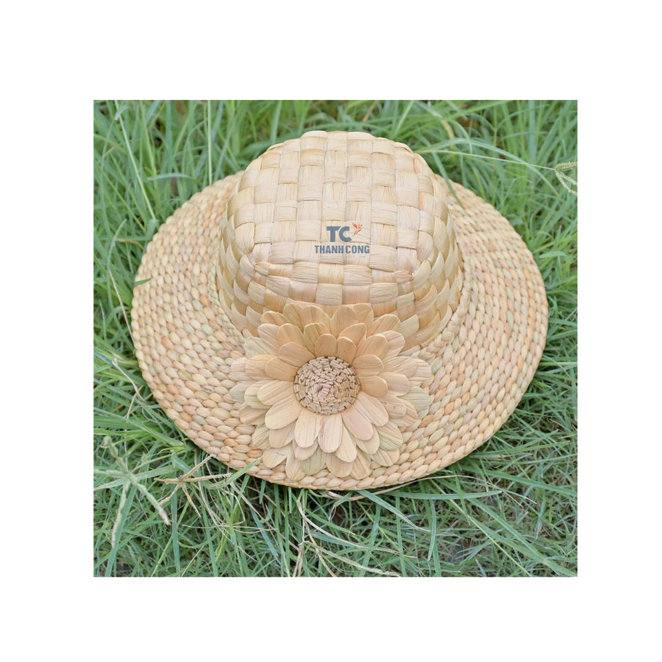 Handmade Natural Water Hyacinth Panama Straw Hat Sun Protection Letter Embroidery for Women for Beach Daily Use Sports Cycling