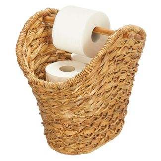 Handmade Natural Wicker Water Hyacinth Basket Braided Oval Toilet Paper Wood bar for Bathroom