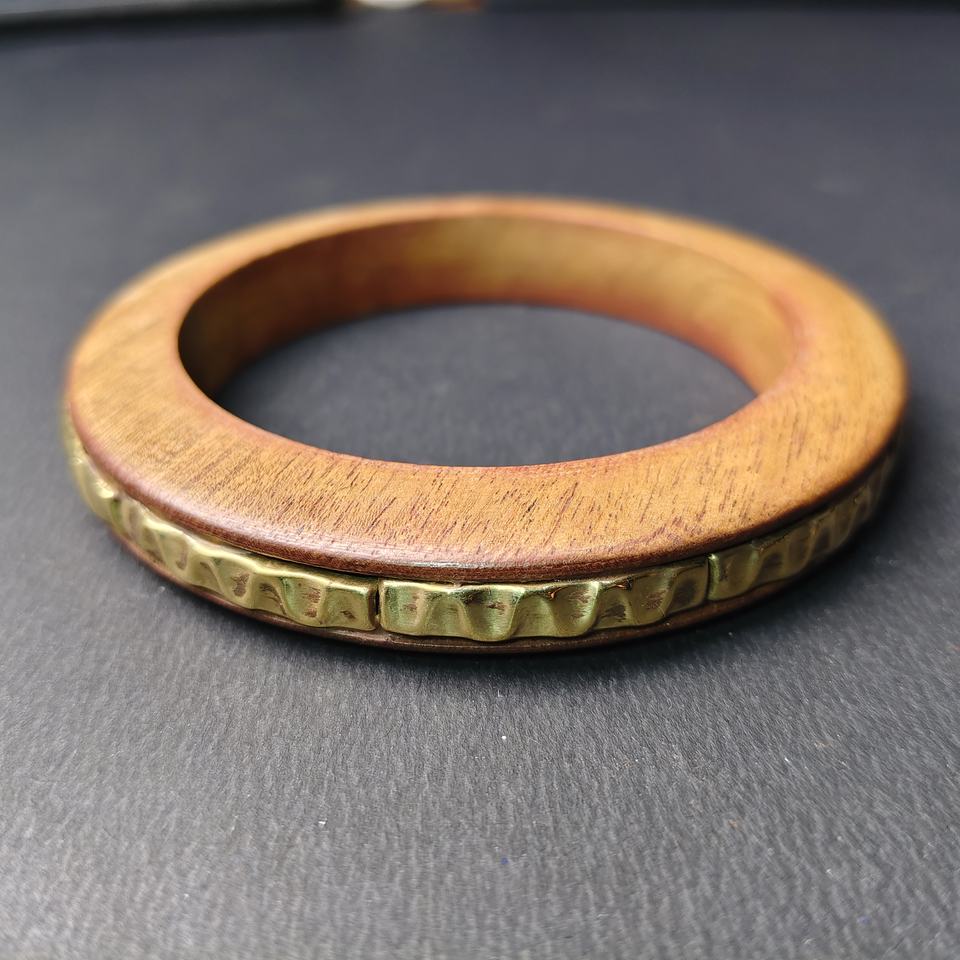 Handmade Natural Wood Bangle with Wavy Brass Inlay - Bohemian Style Handcrafted Wooden Jewelry for Women - Eco-Friendly