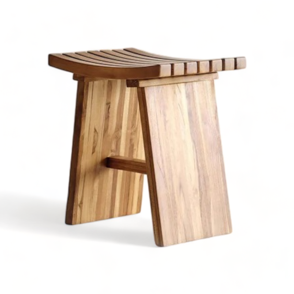 Handmade Natural Wood Teak Shower Bench Curved Seat Indoor/Outdoor for Living Room Kitchen Hotel