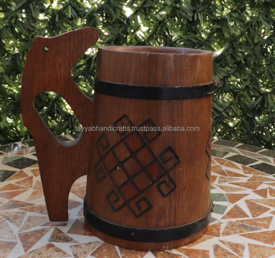Handmade Natural Wooden Drinking Cup Barrel Mug for Beer Tea Coffee from India