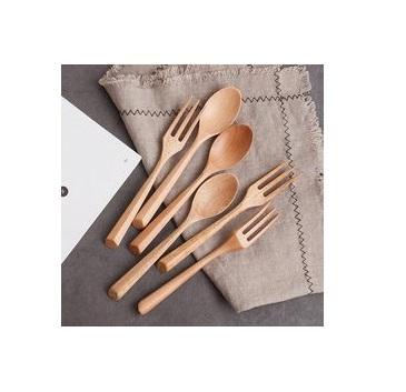 Handmade 100% Natural Real Wooden Bamboo Handle Cutlery Set Disposable Tableware for Restaurant and Party Travel Use