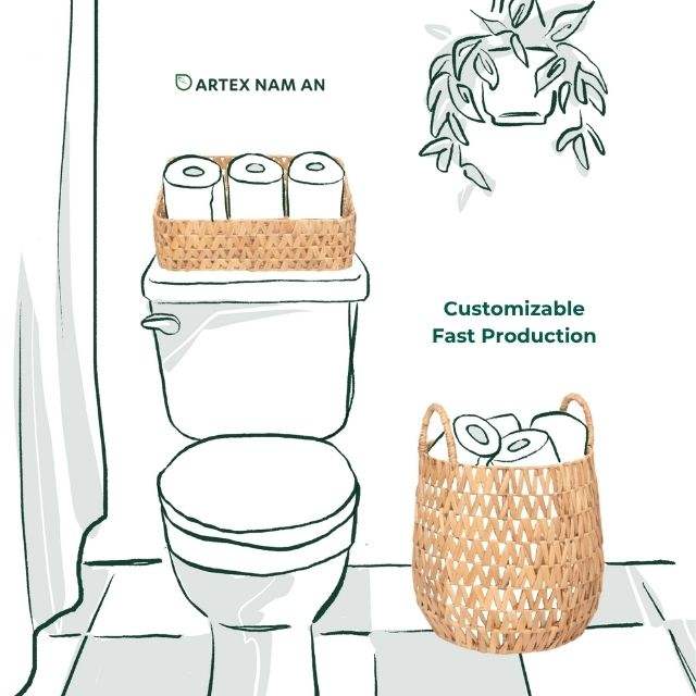 Handmade Natural Woven Hamper Water Hyacinth Laundry Basket for Home Storage