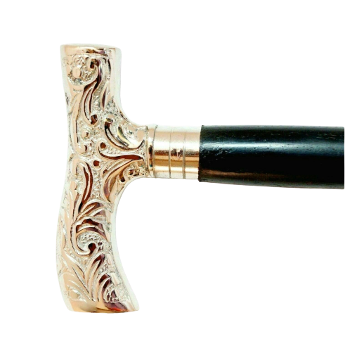 Handmade 36'' Nautical Walking Stick Solid Brass Designer T-Handle Natural Wooden Shaft Unique Three-Fold Cane Outdoor Hiking