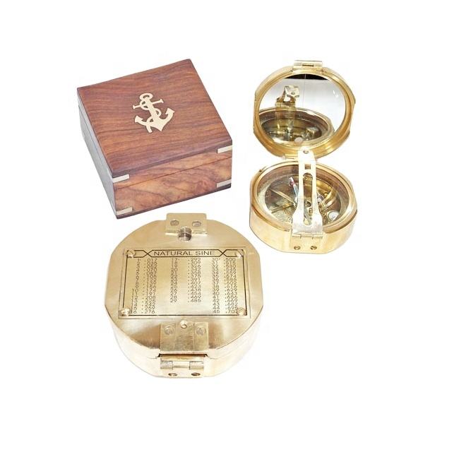 Handmade Nautical Brunton Compass Mirror Polished With Wooden Box Exclusive Nautical Brass Compass