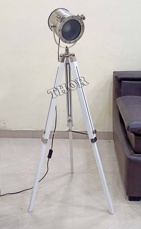 Handmade Nautical Spotlight Floor Lamp with E27 Base Chrome Polished Tripod for Bedroom Office Decoration Search Light