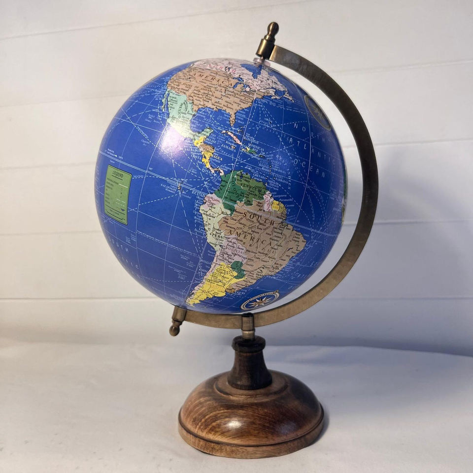 Handmade Nautical Wooden Base Geography World Map Earth Study Globe Armillary Unique Globe Home & Deco Office Desktop Map Globe