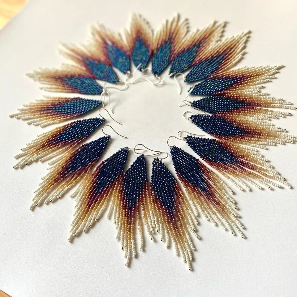 Handmade Navy Blue Ombre Beaded Earrings with Gradient Design for Elegant Party and Daily Wear Jewelry