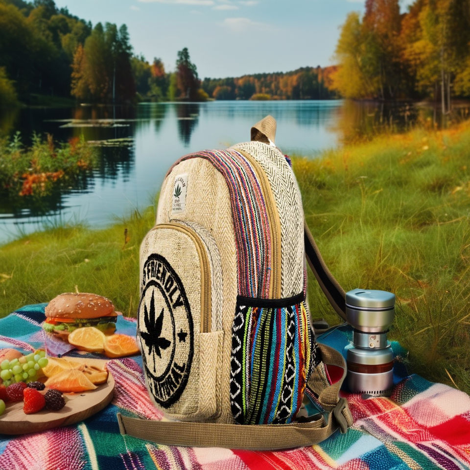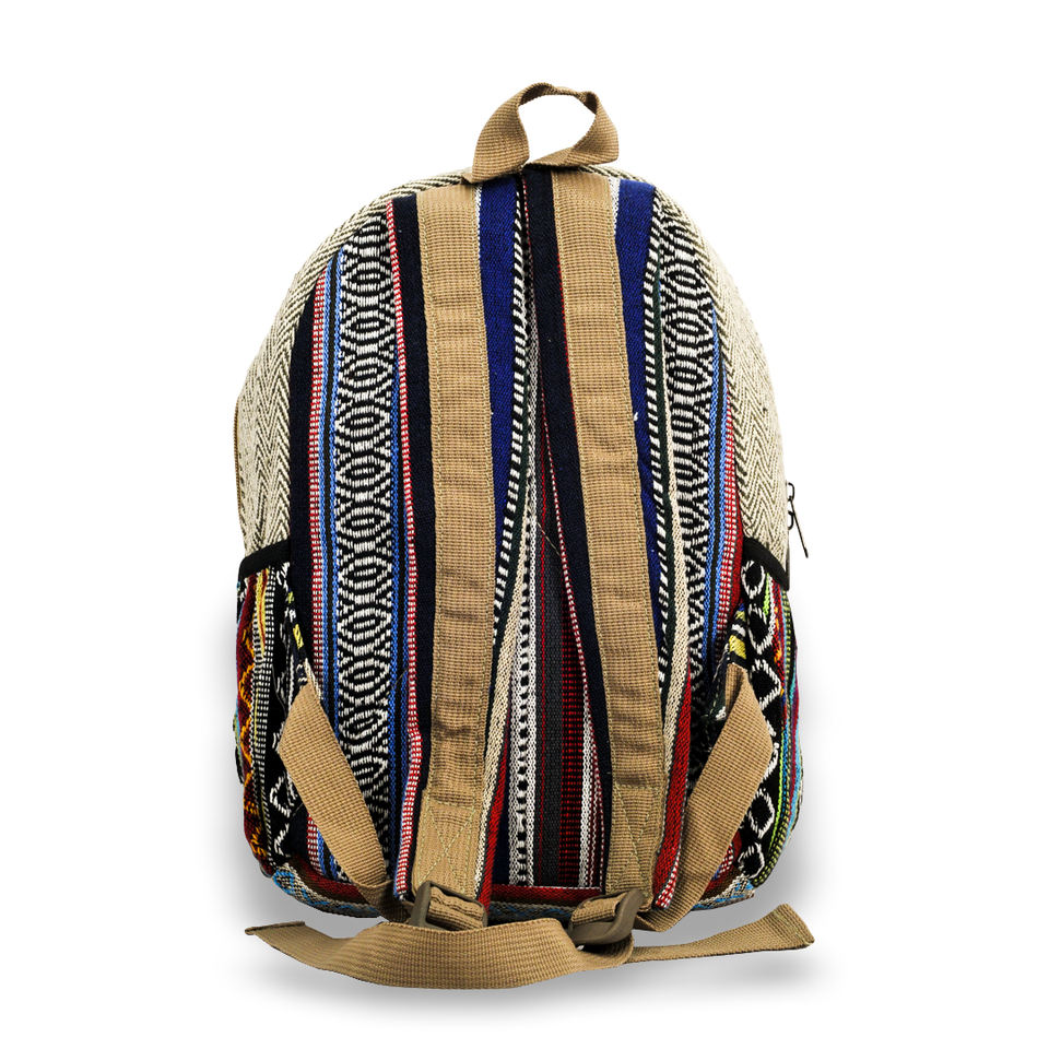 Handmade Nepal Himalayan Hemp Cotton Backpack Leaf Characters Design Eco-Friendly Lightweight Zipper Anti-Theft Bohemian Daily