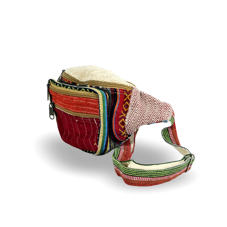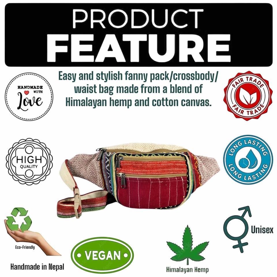 Handmade Nepal Stylish Bohemian Design Hemp Cotton Fanny Pack 4 Pockets Canvas Lining Zipper Portable Winter Backpack Travel