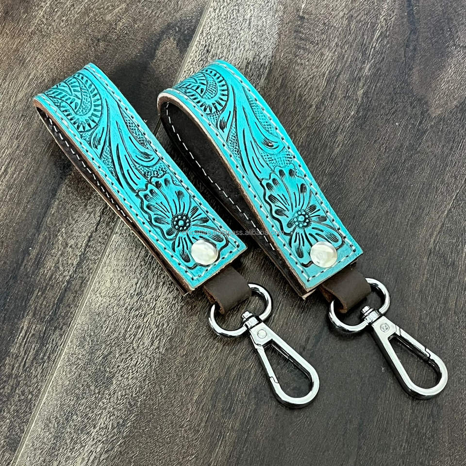 Handmade New Designer 2025 Tooled Leather Wrist keychain Luxury Genuine Cow Leather Keychain Key Metal Clip Holder for Women's
