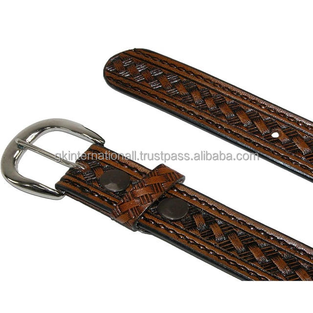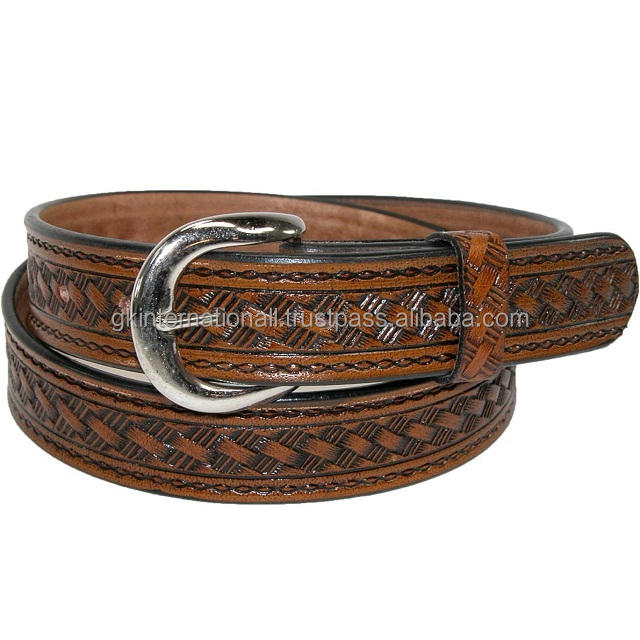 Handmade New Design Basket Engraved Western Leather Tooling Belt for Men and Women Solid Nickel Brass Single Pin Buckle Set