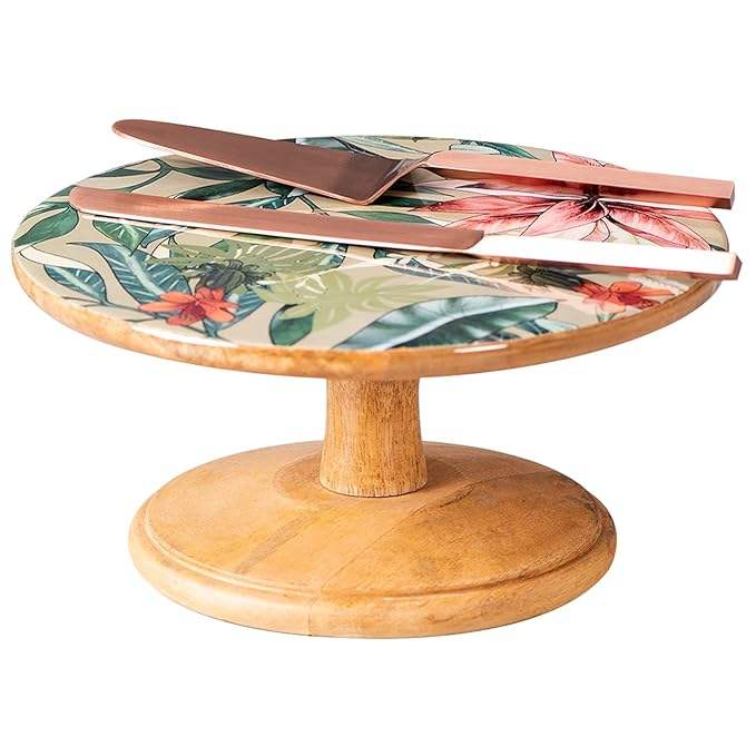 Handmade Non-Stick Wooden Cake Stand & Server Combo with Cupcake Stand for Party and Cake Cutting