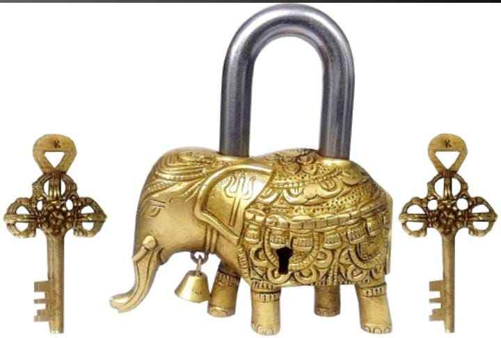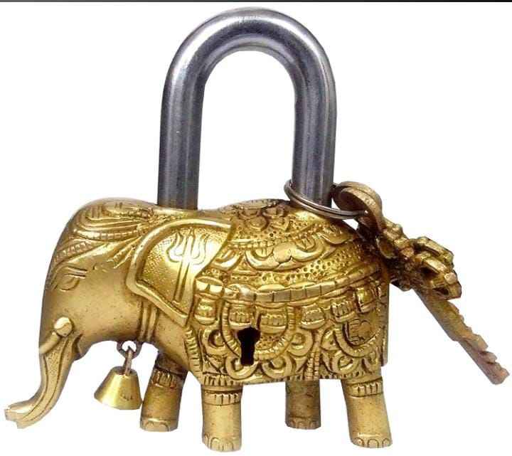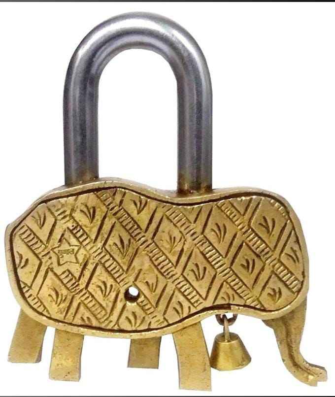 Handmade Vintage Antique Brass Elephant Security Lock Old-Style Padlock with 2 Safety Keys Exclusive Home Office Gifting Option