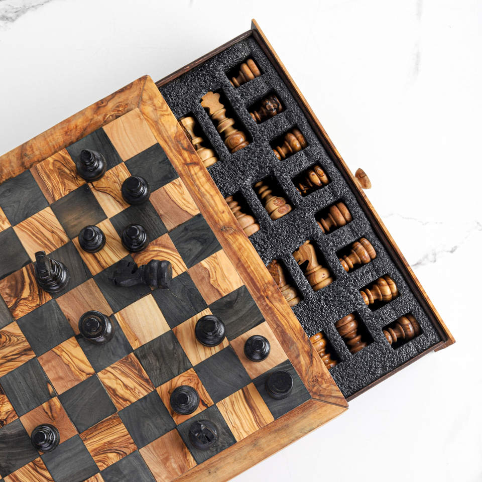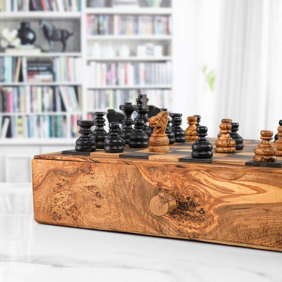 Handmade Olive Wood Chess Set With Storage Board | Premium Wooden Chess Set for Players of All Levels