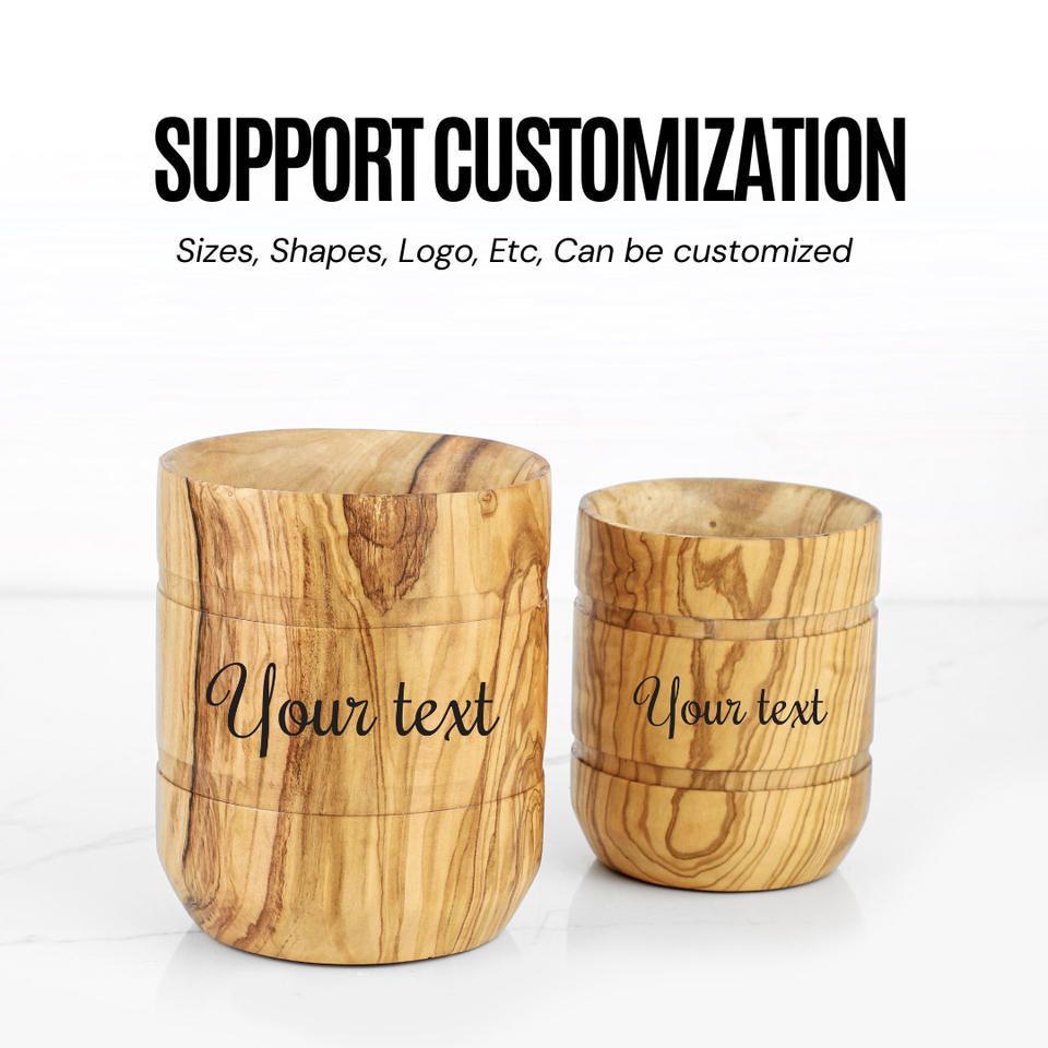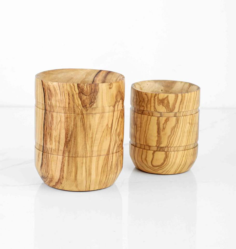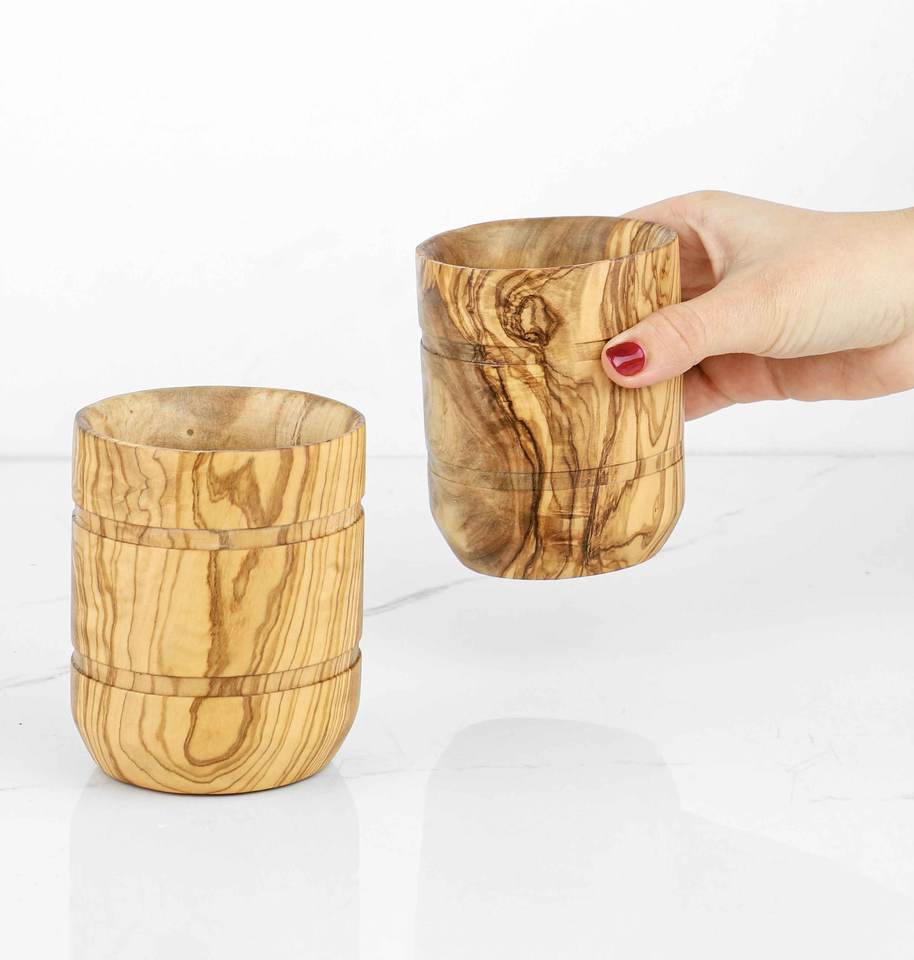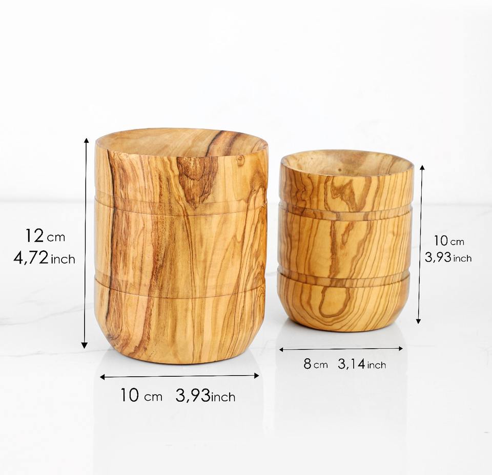Handmade Rustic-Style Natural Olive Wood Tea Cup & Saucer Eco-Friendly & Sustainable with Strips Accessory