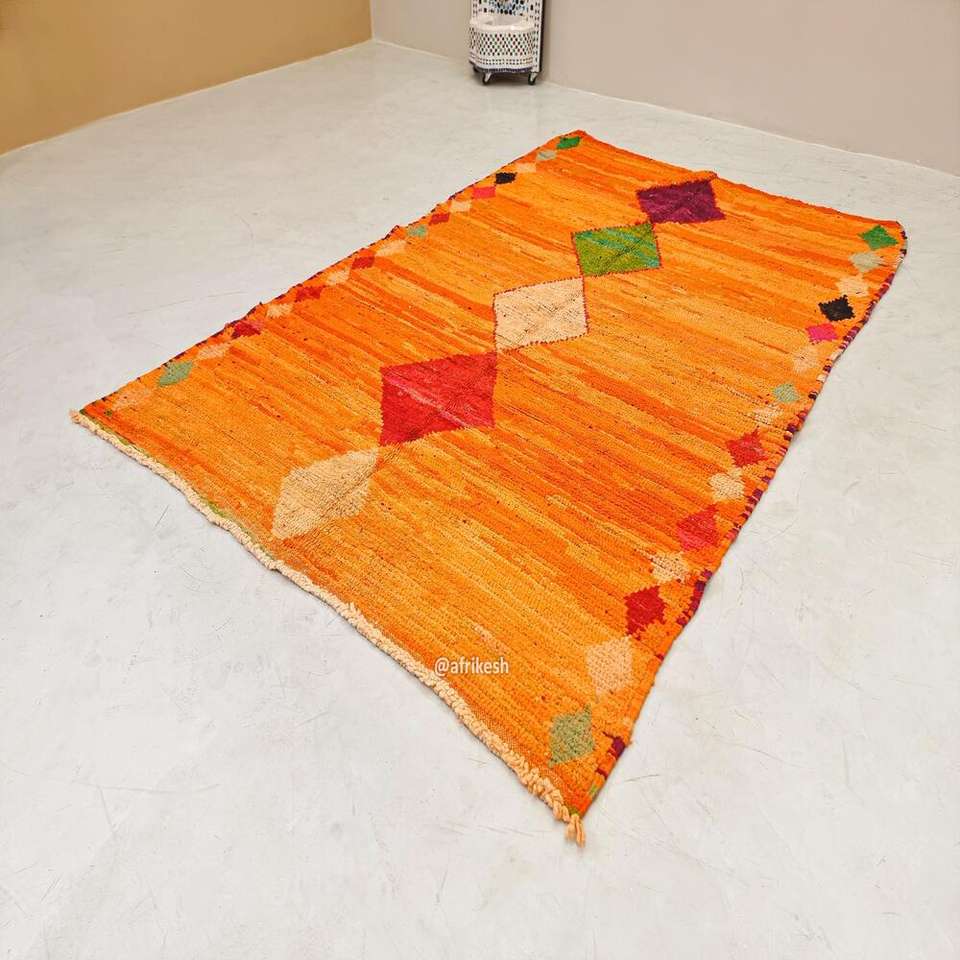 Handmade Orange Color Embroidered Cotton Material Designer Carpets Hand Block Print Pattern Dhurries for Home Living Decor Rugs