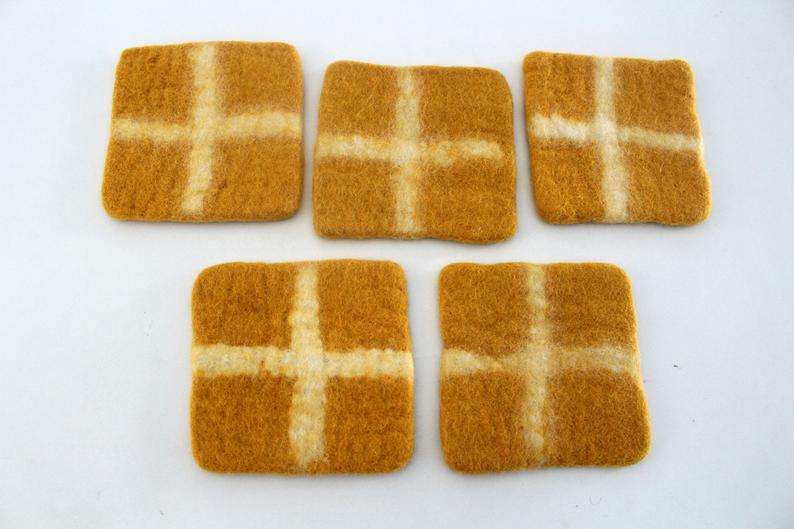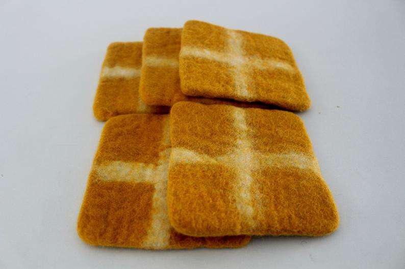 Handmade Orange Squircle Felt Coasters Set of 5 Natural Wool From Nepal Unique Home Decor