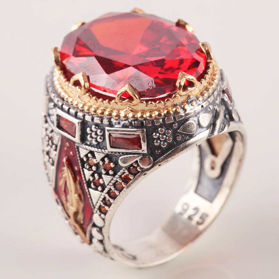 Handmade Original Silver Ring Men 925 Sterling Agate Stone Ottoman Style Jewelry Party Featuring Oval Cut Diamond Pearl