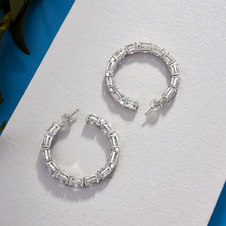 Handmade Oval Hoop Earrings with 3.60 Carat Moissanite Diamond Classic Eternity Earrings with Oval Cut Charms for Women