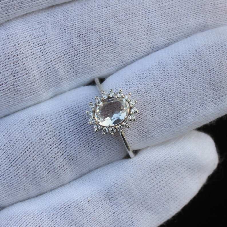 Handmade Oval White Topaz Ring Sterling Silver Promise Ring Elegant Fashion Ring For Women