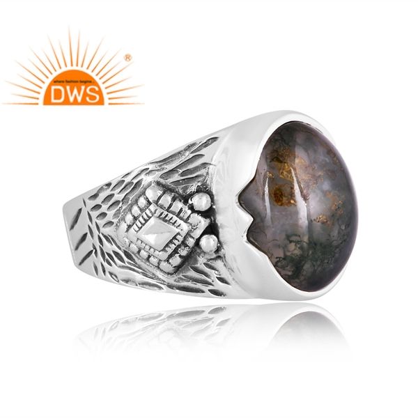Handmade Oxidized Sterling Silver Natural Green Moss Agate Gemstone Stackable Ring Jewelry for Women Gift for Her