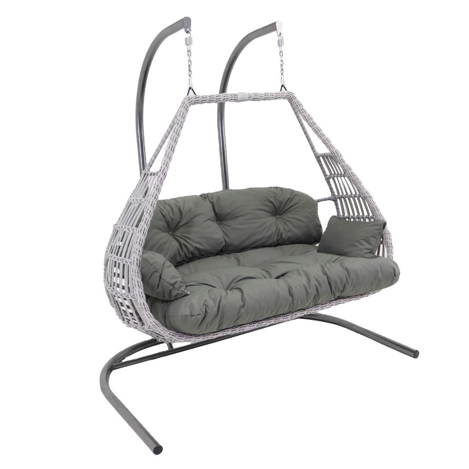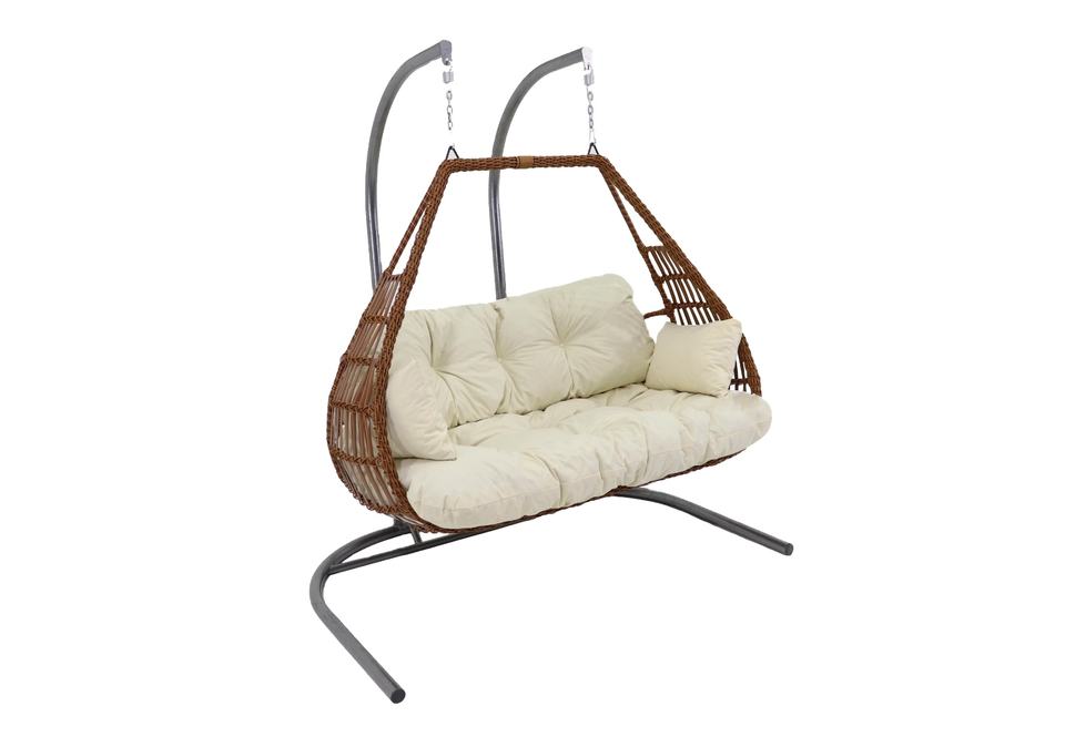 Handmade PE Rattan Macrame Modern Outdoor Furniture Indoor Wicker Thin Garden Adult Double Seat Patio Swings Hanging Chair Metal