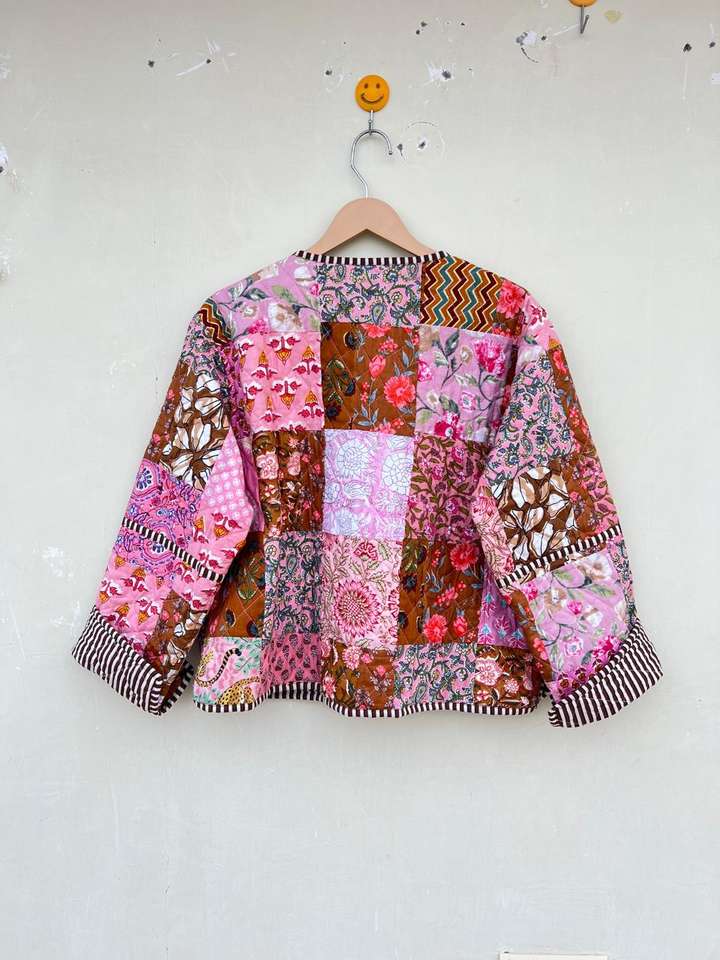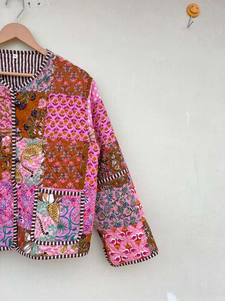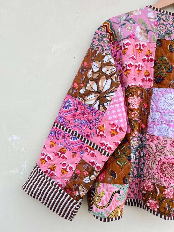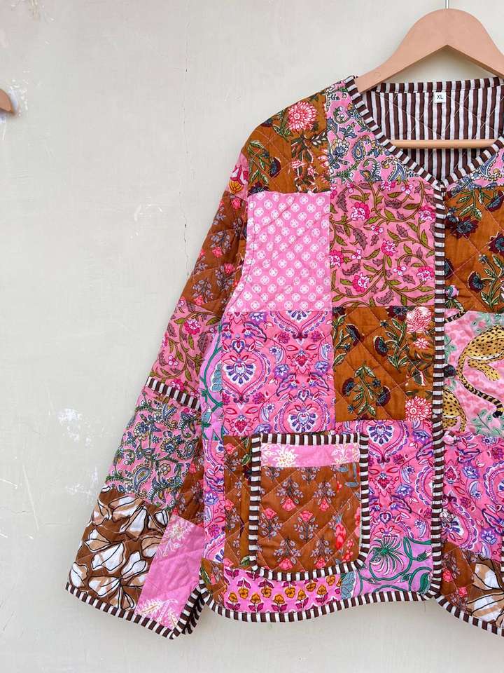 Handmade Bohemian Style Quilted Unisex Jacket Floral Pattern Indian Cotton Breathable Jersey Button Casual Winter Coat for Women