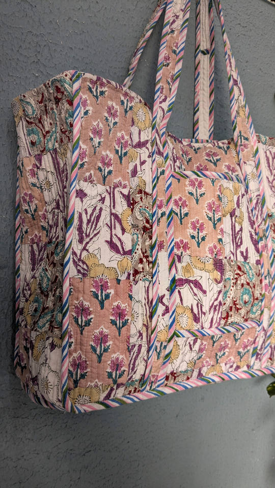Handmade Patchwork Quilted Cotton Tote Bag Block Print Market Shopping Travel Bag with Personalised Gift for Her