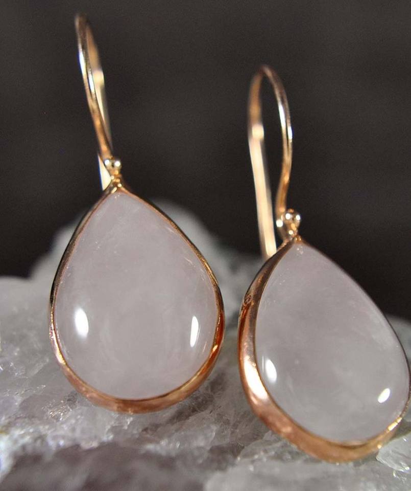 Handmade Pear Shape Rose Quartz Gems Dangle Fine Earring 10 To 14MM Bezel Set 925 Sterling Silver Gold Plated Earring For Her